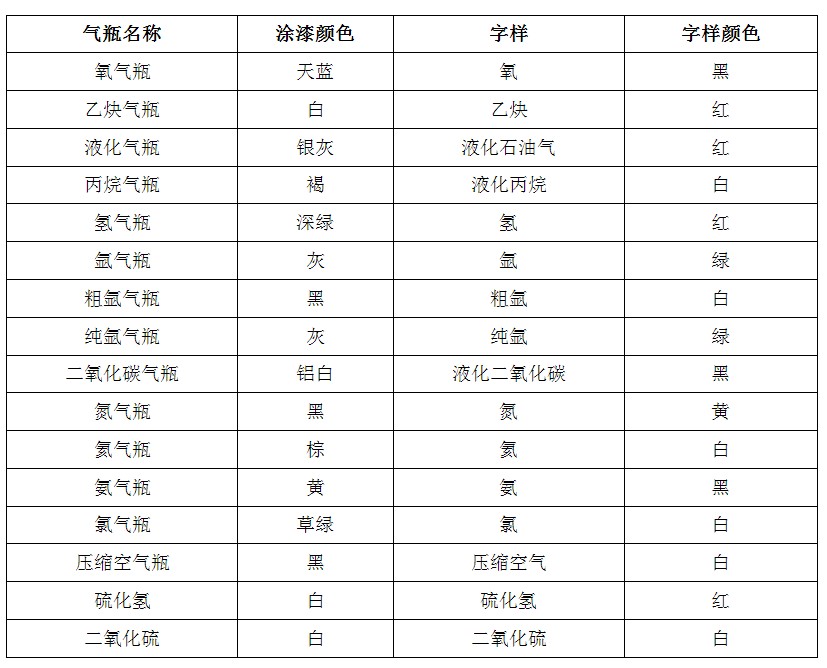 常用气体钢瓶的颜色标志