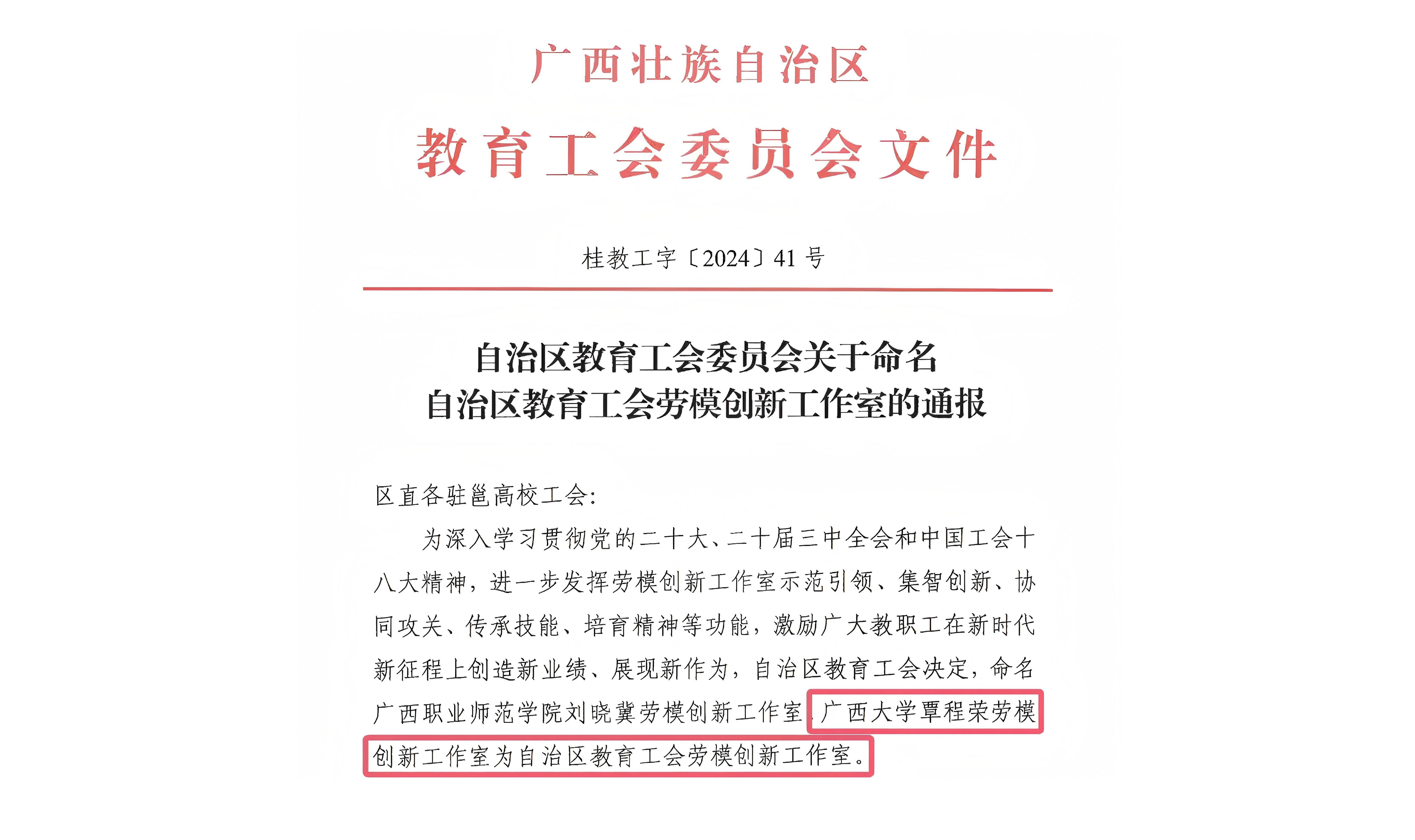 近日,从《自治区教育工会委员会关于命名自治区教育工会劳模创新工作室的通报》(桂教工字〔2024〕41号)获悉,小狐狸直播官网