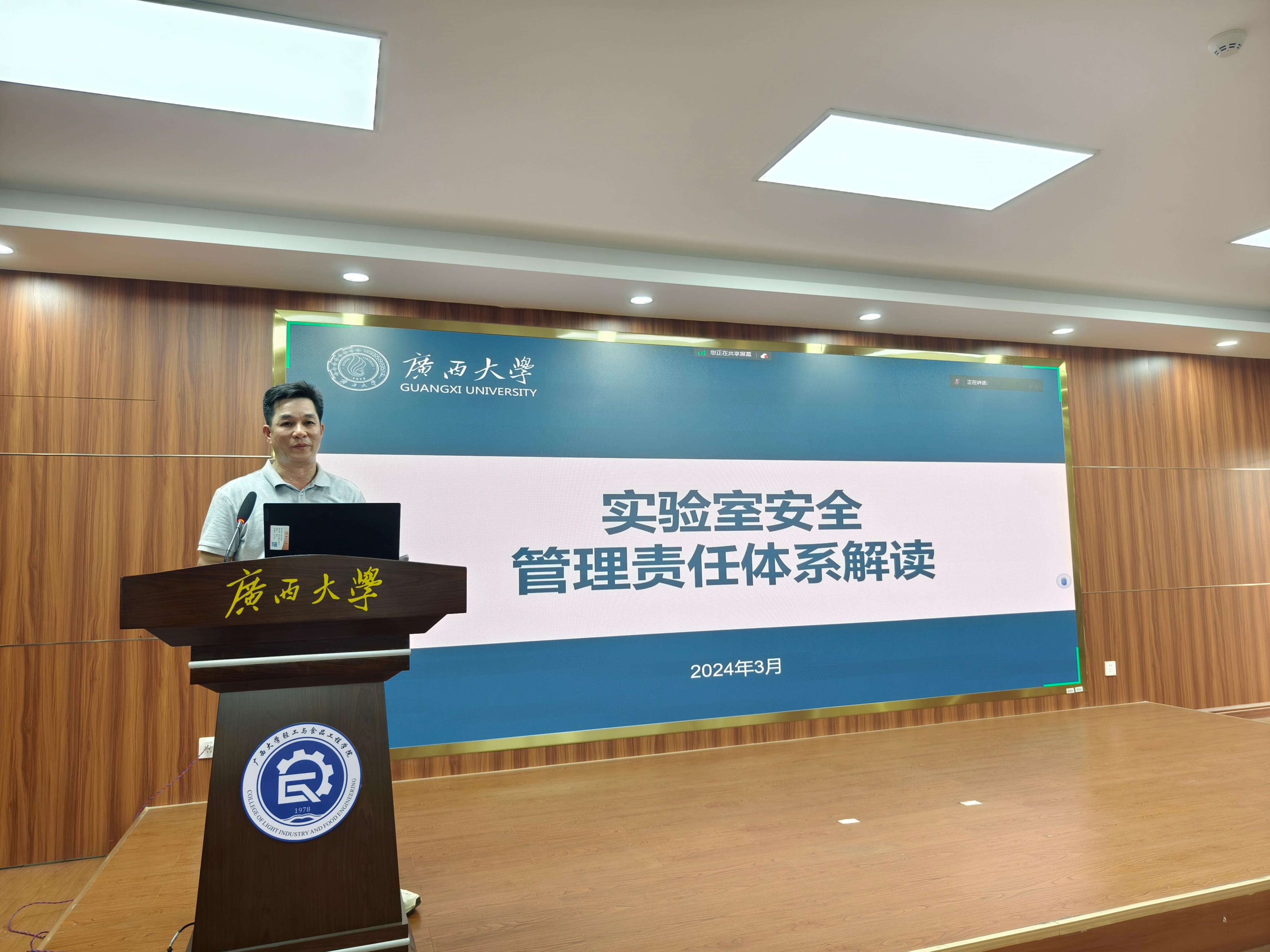 开学以来的几次安全检查情况进行了通报,并对《高等学校实验室安全检查项目表(2023)》要点和《广西大学实验室安全专项整治三年行动实施方案》进行了详细解读。同时,对小狐狸