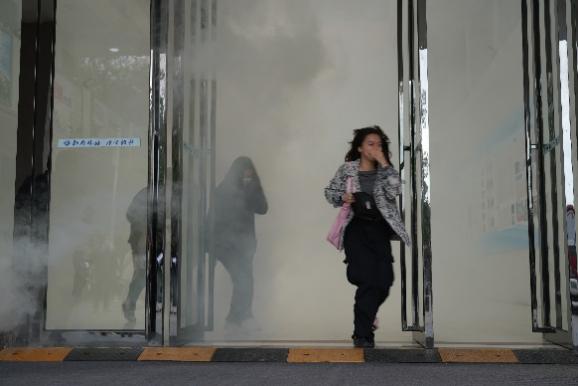 师生开展消防知识培训并组织进行应急疏散演练,各系教职工代表、学生代表参加。黄光电从消防案例引入,详细讲解了消防安全知识。他强调,遇到火灾等突发事件要冷静面对,用正确的方式方法进行应急逃生,并提醒师生要提高消防安全意识,学会使用消防面具、灭火毯、灭火器等消防用具,保证生命财产安全。