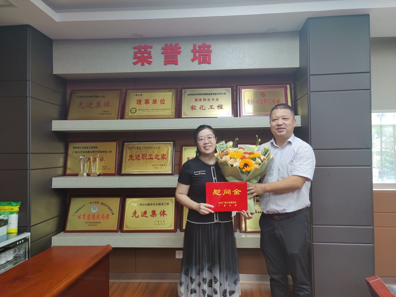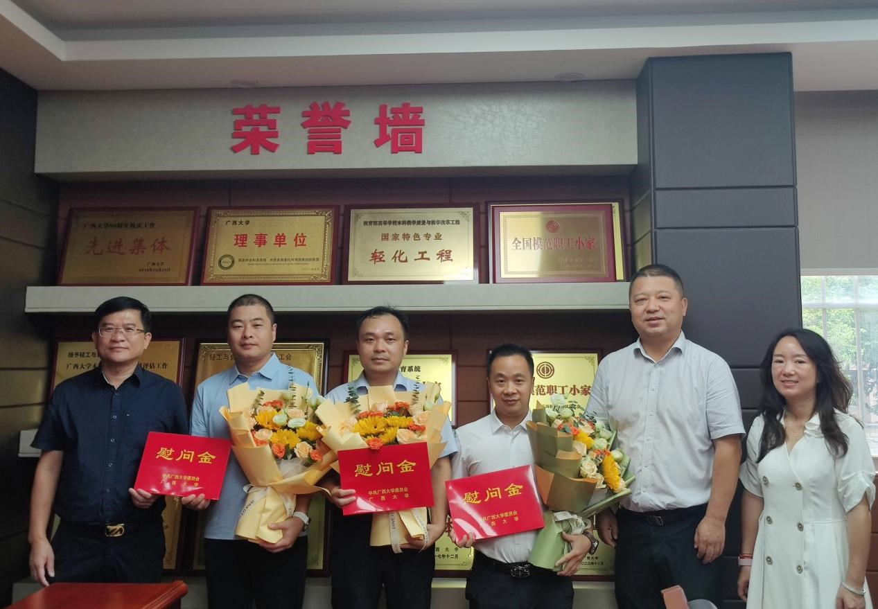 党委书记姜玮,党委副书记、院长覃程荣,副院长、工会主席胡天淑代表小狐狸