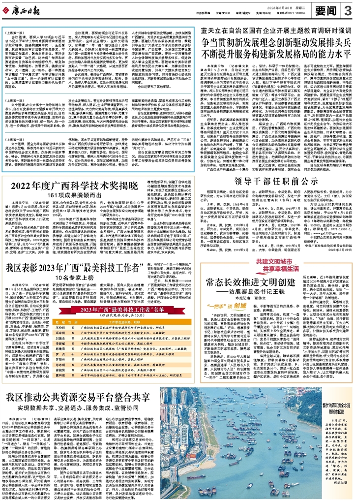 //gxrb.gxrb.com.cn/?name=gxrb&date=2023-05-30&code=003&xuhao=5 本报南宁讯 (记者/李新雄)记者5月29日获悉,自治区政府发布《关于2022年度广西科学技术奖励的决定》,揭晓2022年度广西科学技术奖,161项成果脱颖而出。 广西科学技术奖是广西科技界的最高奖项,每年获奖的都是对广西经济社会作出重大贡献的科技工作者和成果。2022年度奖项共161项,分为“4+3”即“最高奖、青年奖、合作奖、企业奖”+“自然、发明、进步”三大奖。其中,最高奖、合作奖各1项,青年奖、企业奖各2项,自然科学奖24项、技术发明奖11项、科学技术进步奖120项。 2022年度广西最高科学技术奖颁给了中科院院士、中国地质科小狐狸 岩溶地质研究所研究员袁道先。作为国际著名的岩溶地质学家,袁道先创立了岩溶动力学理论,提出岩溶生态系统理论并应用于我国石漠化治理,开拓了岩溶学的全球变化研究新领域,使我国岩溶研究走在世界前列。他推动国际岩溶中心于2008年落户桂林,成为我国第一个由联合国授权设立的地学领域二类研究中心。 青年科技工作者是科研队伍的新生力量,近年来广西青年科技专家踔厉奋发,不少研究成果业界领先。广西大学教授聂双喜、上汽通用五菱车体工程部总监赵肖斌分别摘取青年科技杰出贡献奖。聂双喜围绕国家碳中和目标下“造纸工业绿色发展”的重大需求,创新思路开展清洁造纸研究,创建了自供电强化碱抽提增效漂白技术与装备体系,实现了纸浆漂白过程AOX超低排放。赵肖斌长期从事汽车车身新结构、新材料、新工艺的研究及应用,突破经济型乘用车高强高品质车身底盘设计关键技术等三大技术难点,他主导开发的车型获“2021中国十佳车身”。 企业科技创新奖奖励等级和荣誉效力等同于三大奖一等奖,是对企业创新的肯定和激励。桂林优利特医疗电子有限公司、广西交科集团有限公司均凭借多项全国首创的硬核成果提升企业竞争力,实现了科技创新与经济效益双丰收,双双获奖。
