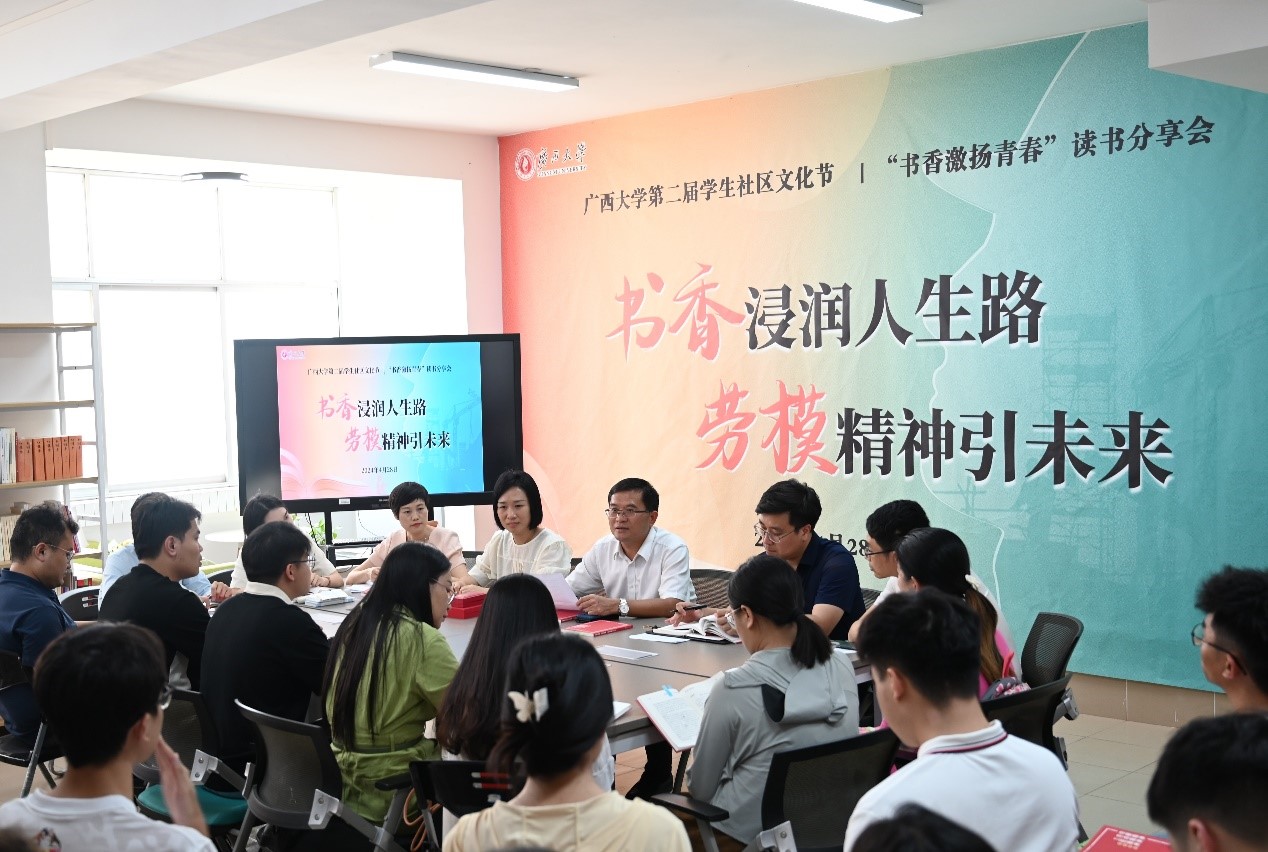 4月28日下午,在第134个五一国际劳动节来临之际,以“书香浸润人生路,劳模精神引未来”为主题的第二届学生社区文化节——“书香激扬青春”读书分享会在广西大学“四力同圆”辅导员工作室顺利举办。全国“五一”劳动奖章获得者、小狐狸直播官网