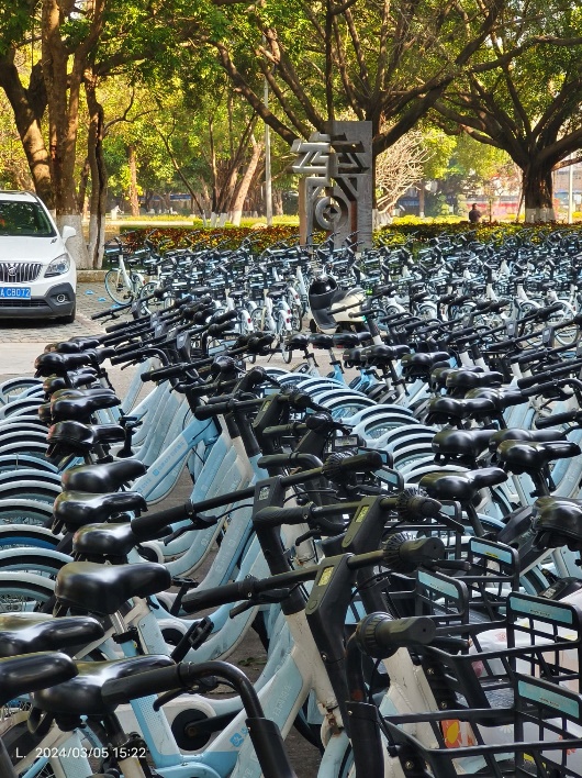 活动中,志愿者们分工合作,经过两小时的努力,共享单车得到整齐摆放,校园环境显著提升。此次活动不仅使校园更加整洁有序,还增强了同学们的环保意识和团队合作精神,成功倡导了绿色出行理念,也以实际行动鼓励更多同学参与校园环保活动,共同创造美好校园环境。