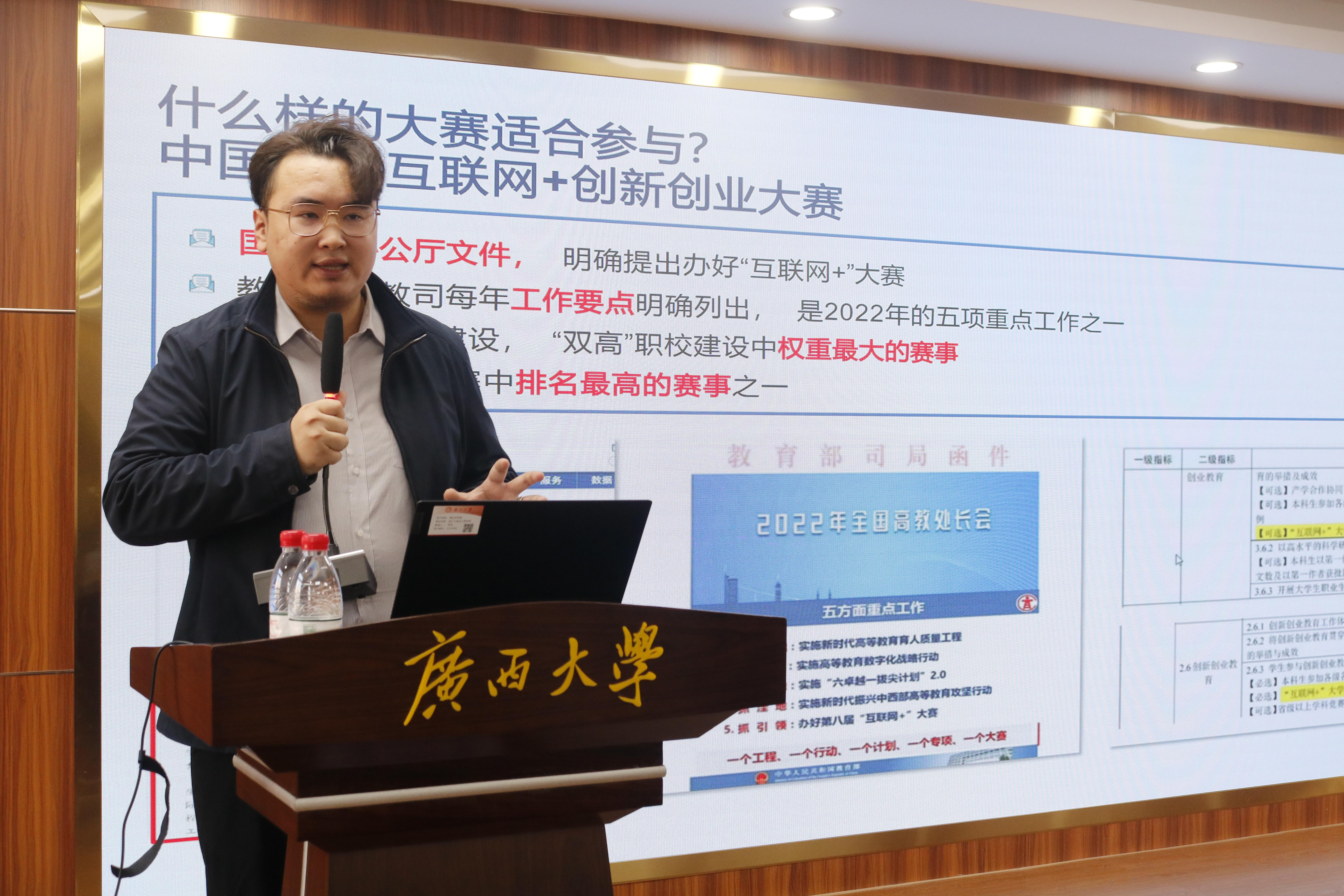 大学生A+类赛事工作动员暨参赛培训会在六楼报告厅举办。会议邀请了广西大学品牌发展研究所所长助理,楚登教育总经理,创新创业类大赛及成果评估专家/评委董蕴辉做主讲,小狐狸