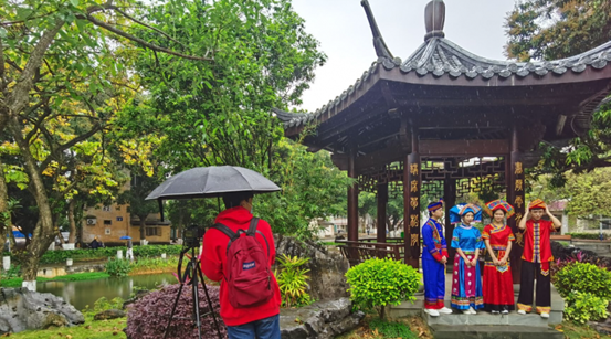 同学组队,共同完成经典民歌《心想唱歌就唱歌》(改编版),欢庆“广西三月三”民歌节。