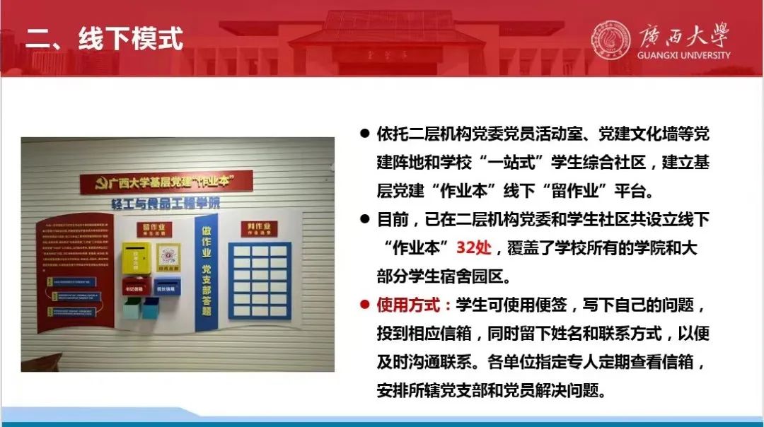 此外,还进行了广西大学基层党建“作业本”模式介绍,并请同学们现场扫码注册登录。